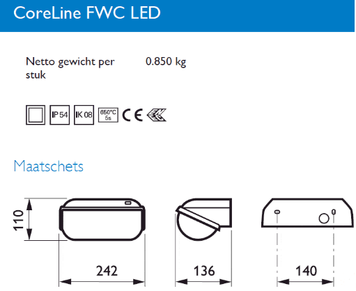 Order product name BWC110 LED9-/830 PSU II WH PH