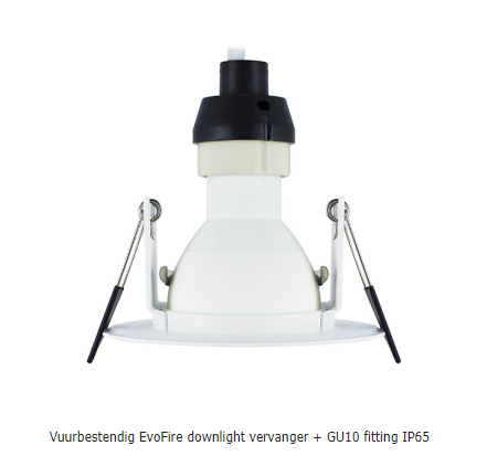 EvoFire, fire resistant Downlight replacement, white, round, including GU10 fitting and loop-in loop-out block, IP65 - 70mm saw hole - front 85mm including LED LAMP