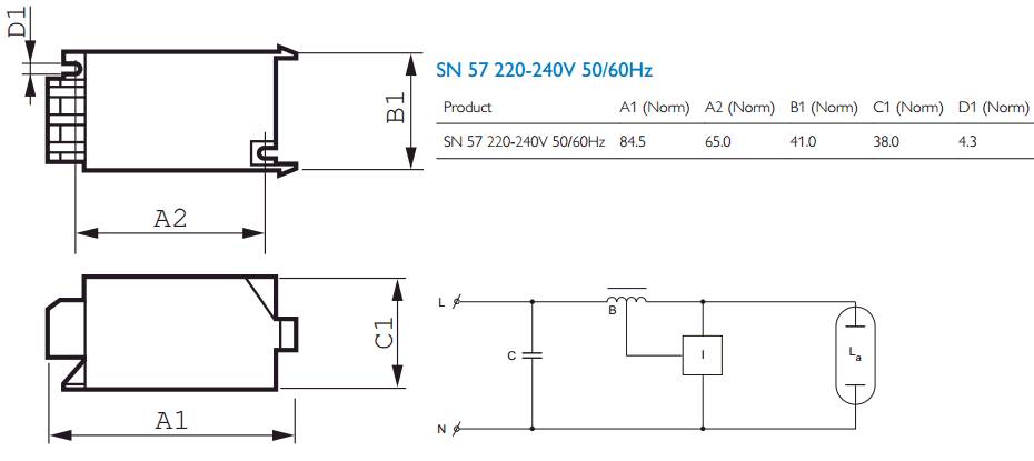 Philips SND 57 230-240V 50/60Hz digital igniter can be used with 1 lamp in combination with a ballast that is equal to the connected lamp.