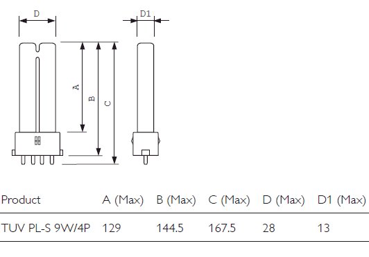 PHILIPS TUV PL-S killing or inactivating bacteria, algae, viri and other primitive organisms air, water and surface disinfection. TUV PL-S. Power 9W.