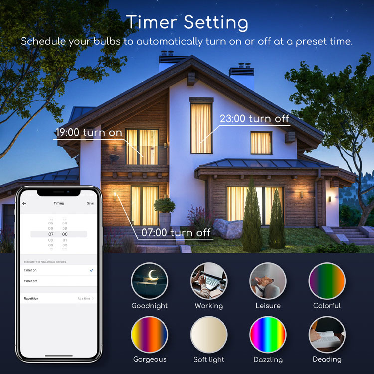 - Remote control with Wifi (Only works with 2.4GHz internet connection), you can control the light at any time, both at home and outside, and run your home with smart.