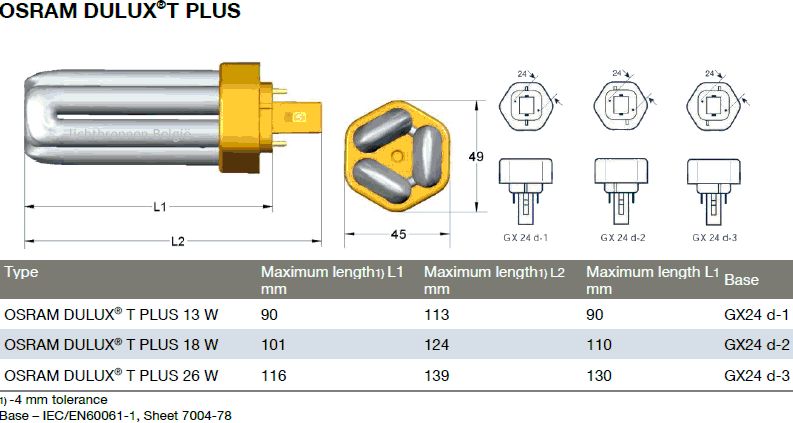 Lampe compacte à économie d'énergie avec 3 tubes étroits. Equipé d'un raccord enfichable à 2 broches (GX24d-3) Couleur de la lumière : 2700K (blanc très chaud)) Puissance : 26 Watt