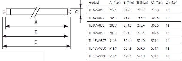 Tube LED Philips T5 TL pour remplacer la lampe TL-mini 8W/840 TL traditionnelle.