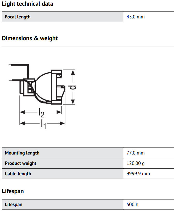 Longueur de montage 81,5 mm Durée de vie Durée de vie 500 h Données supplémentaires sur le produit Anode de base (désignation standard) Câble Cathode de base (désignation standard) Capacités du câble Refroidissement Forcé Position de combustion p20