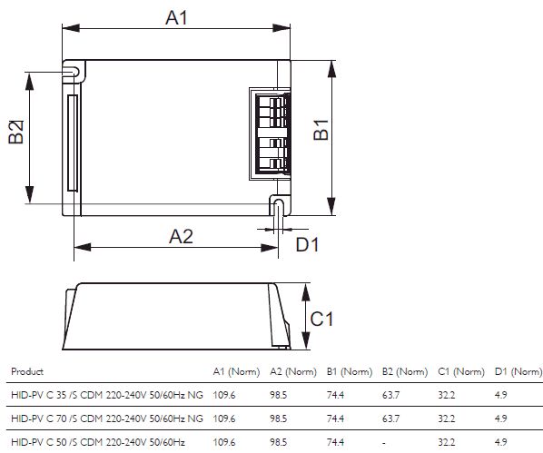 HID-PV 70 C / S CDM 220-240 50 / 60Hz  |