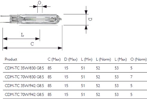 Classe énergétique A. La lampe Philips MASTER CDM-TC est une lampe aux halogénures métalliques en céramique très économe en énergie et la plus compacte. Cette Master Color CDM-TC est une lampe aux halogénures métalliques largement utilisée avec filtre UV pour la protection contre la décoloration. Caractérisé par une lumière étincelante et une excellente stabilité des couleurs.