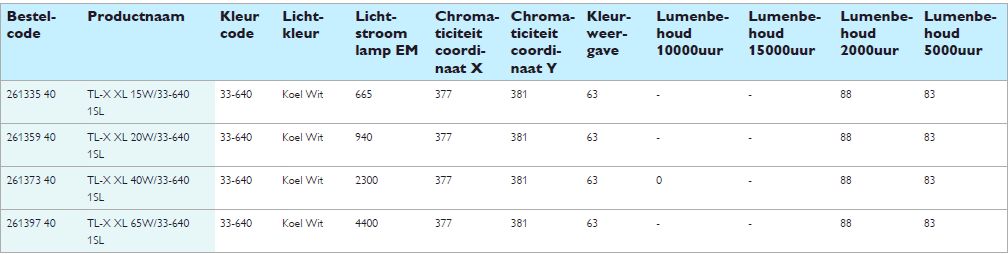 Commande Nom du produit TL-X XL 40W / 33-640 1SL / 25